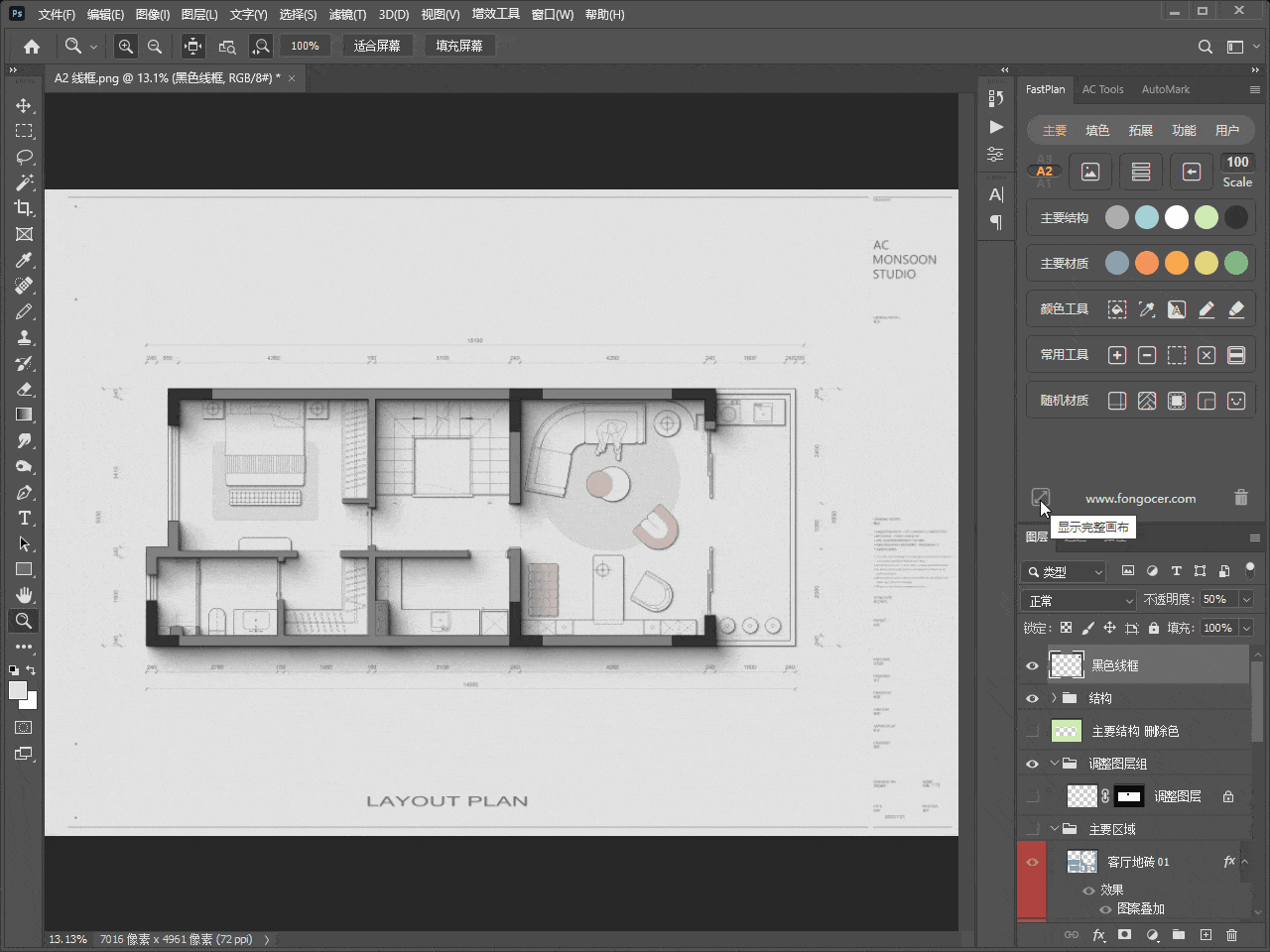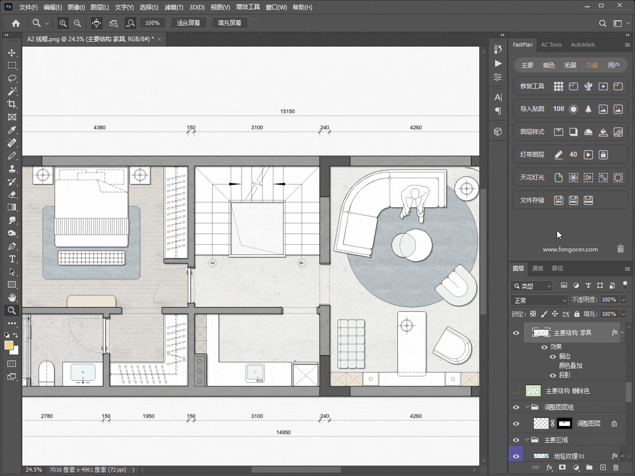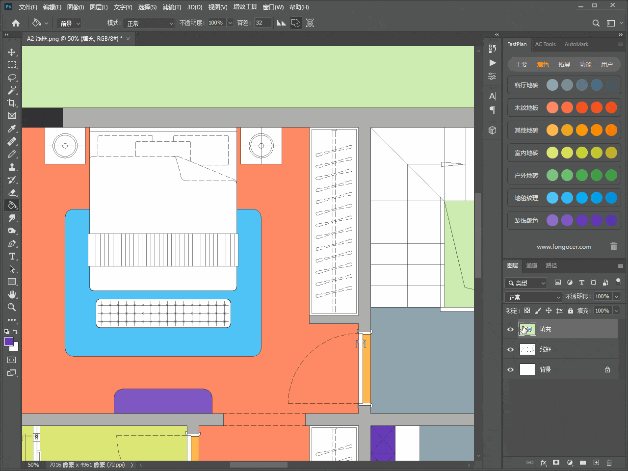 Fastplan是运作在PhotoShop平台的一个快速制作彩平的插件。