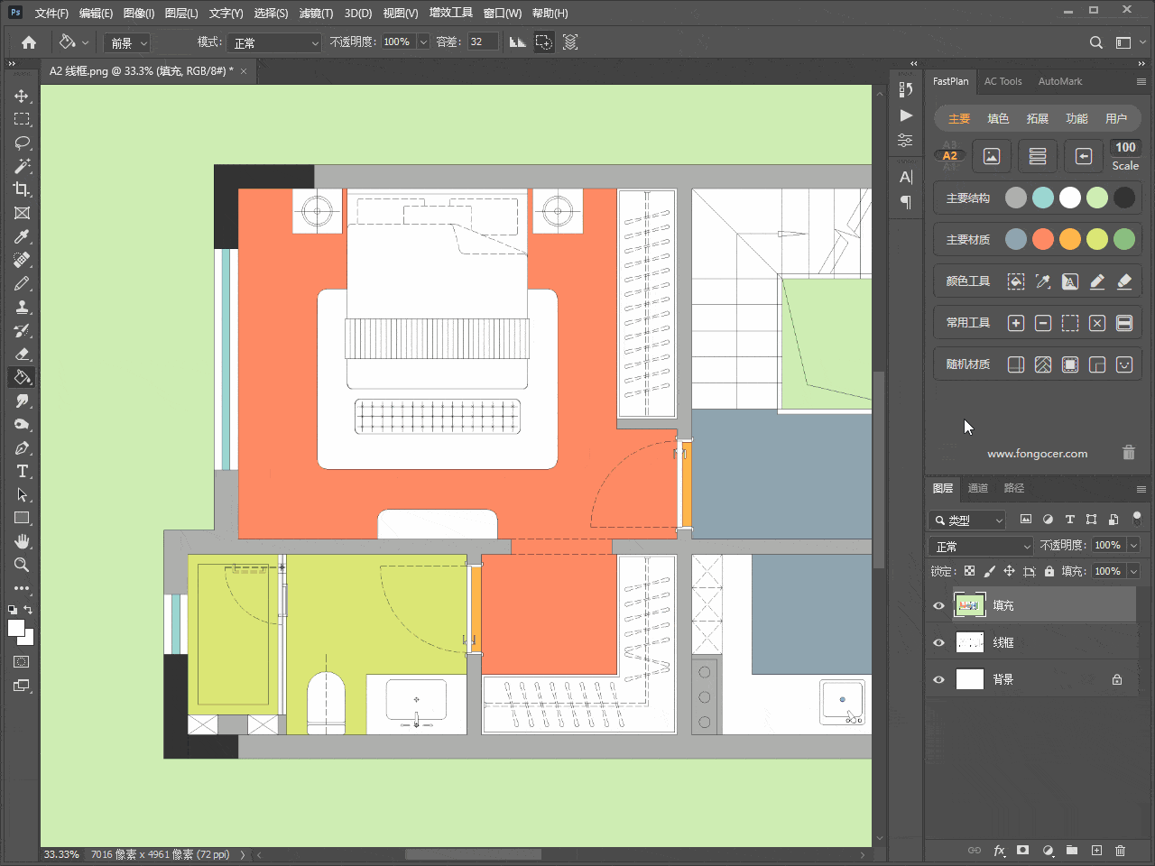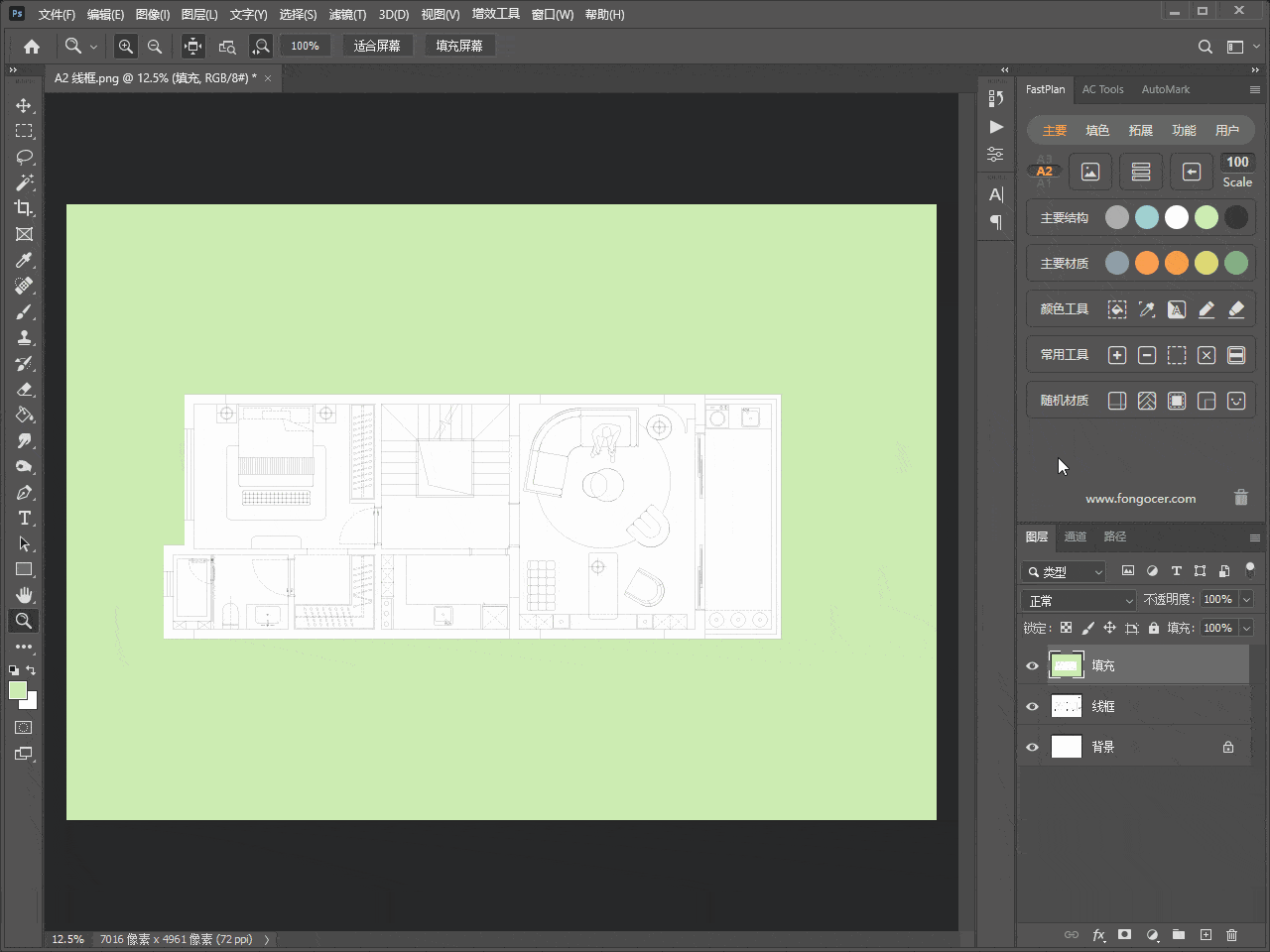 Fastplan是运作在PhotoShop平台的一个快速制作彩平的插件。